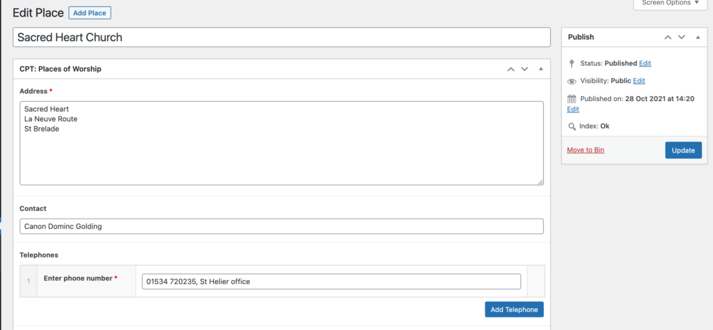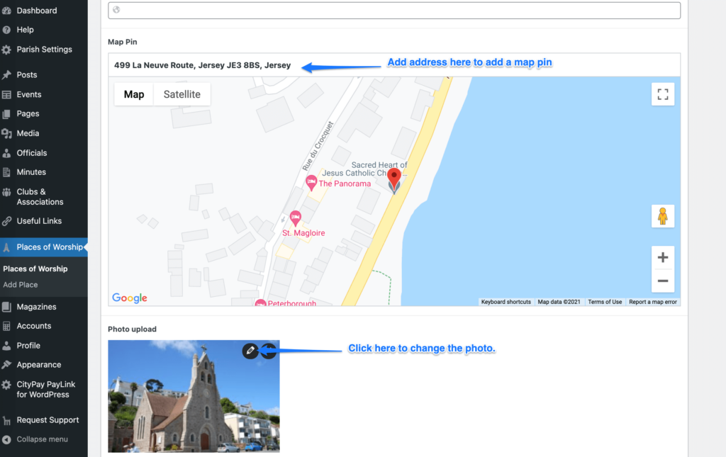 8. You can use the same steps to add a new Place of Worship. You just need to navigate to Places of Worship and select “Add new”